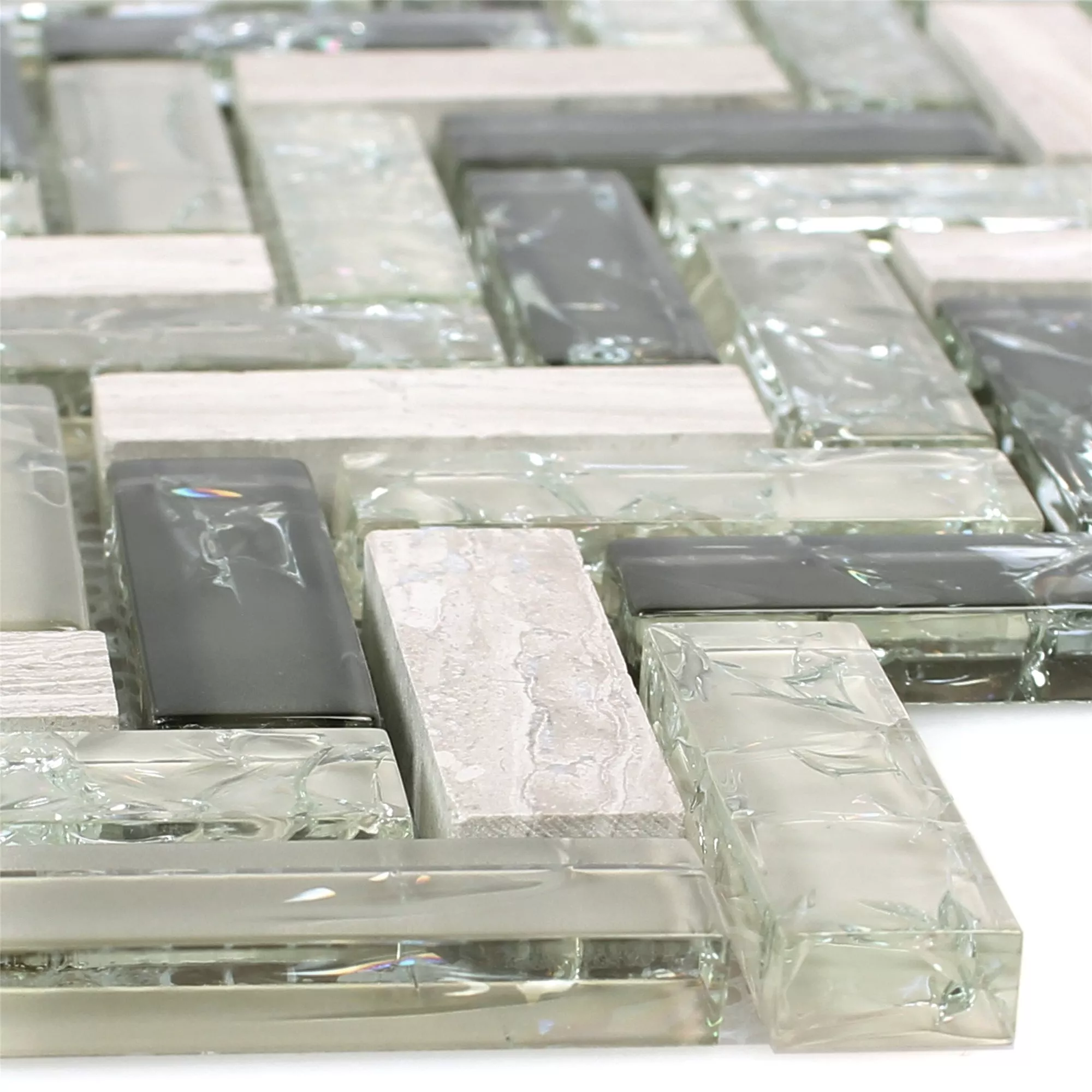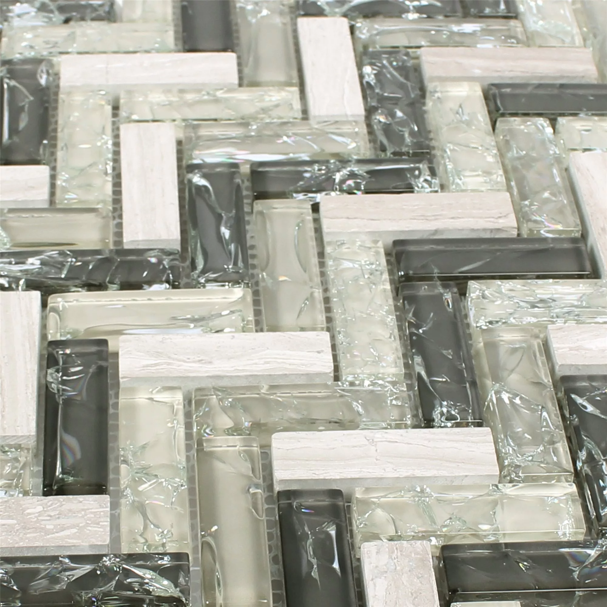 Sample Mosaic Tiles Glass Natural Stone Malawi Grey Green Fish Bone