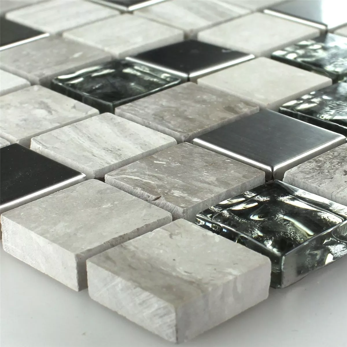 Sample Mosaic Tiles Glass Stainless Steel Grey