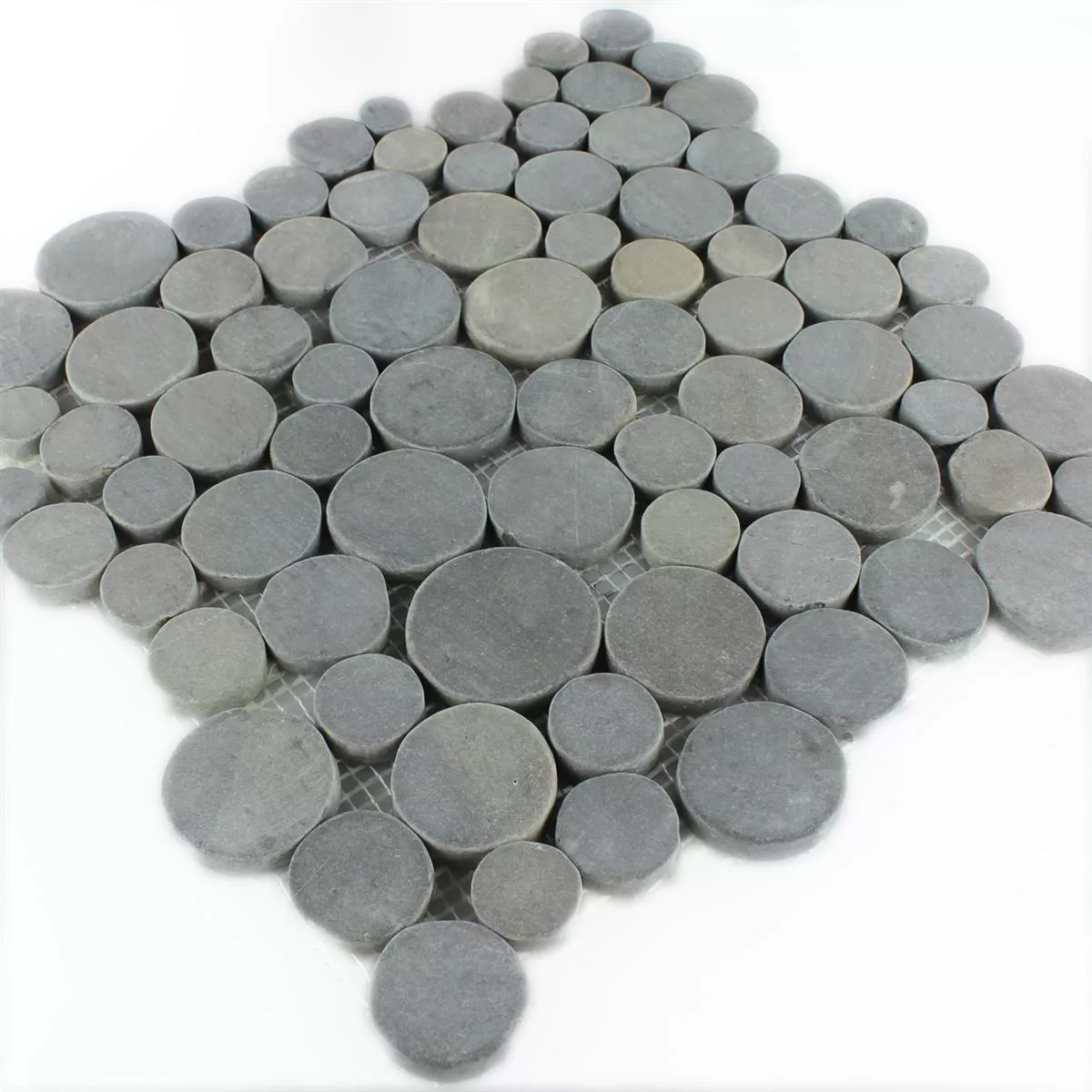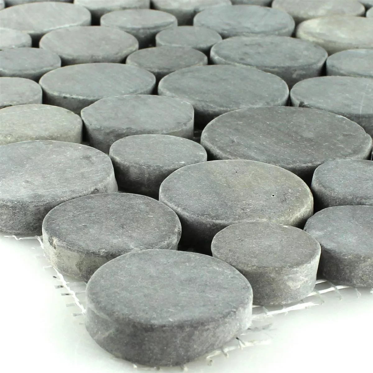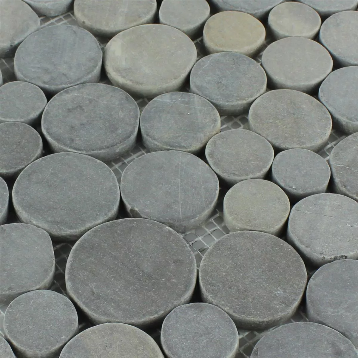 Sample Mosaic Tiles River Pebbles Coin Round Dark Grey