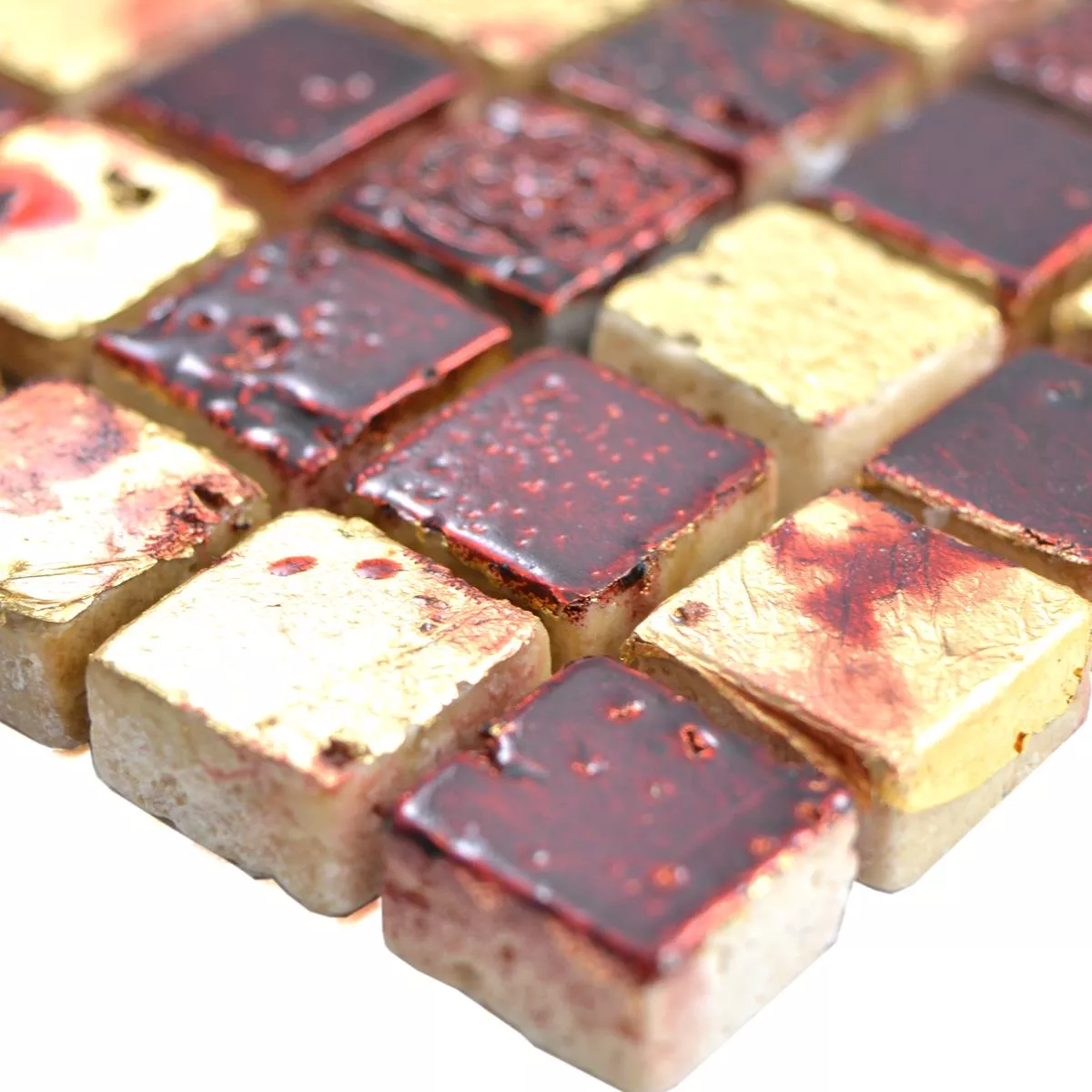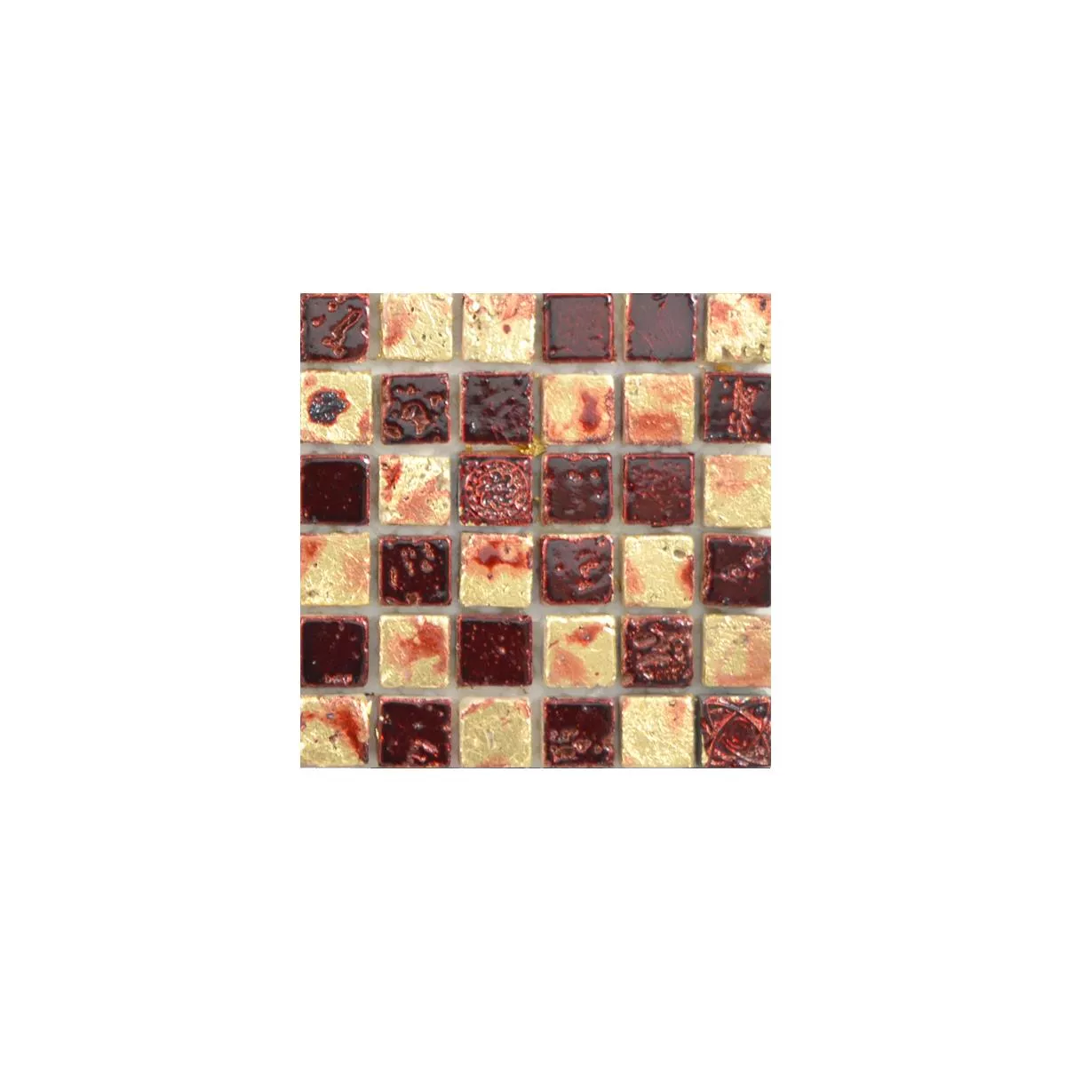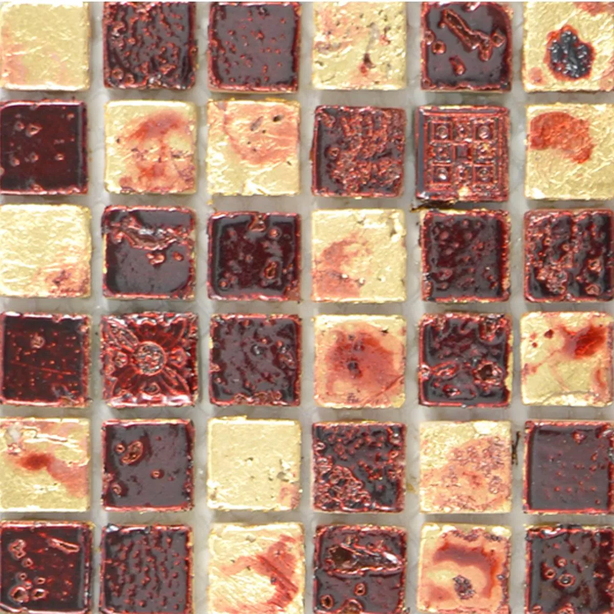 Sample Natural Stone Resin Mosaic Tiles Lucky Gold Red