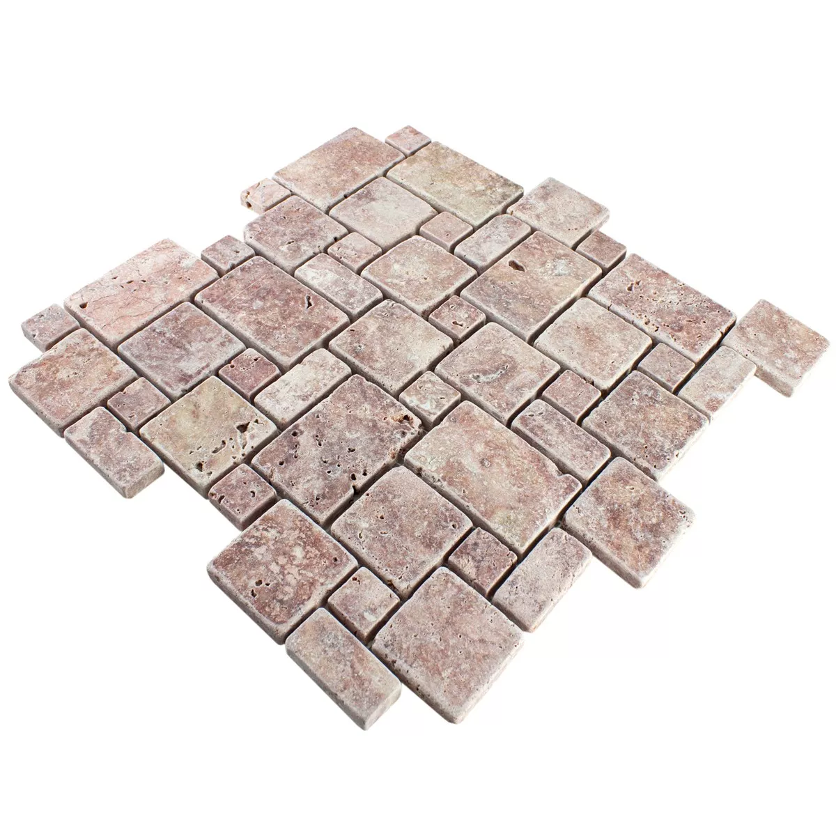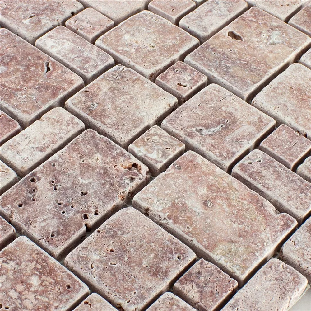 Sample Natural Stone Travertine Mosaic Tiles LaGrange Red