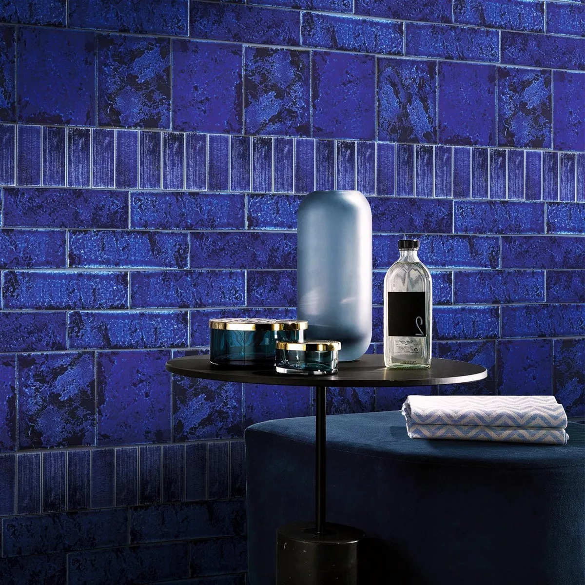 Sample Wall Tile Vanroy Waved 6x24cm Dark Blue