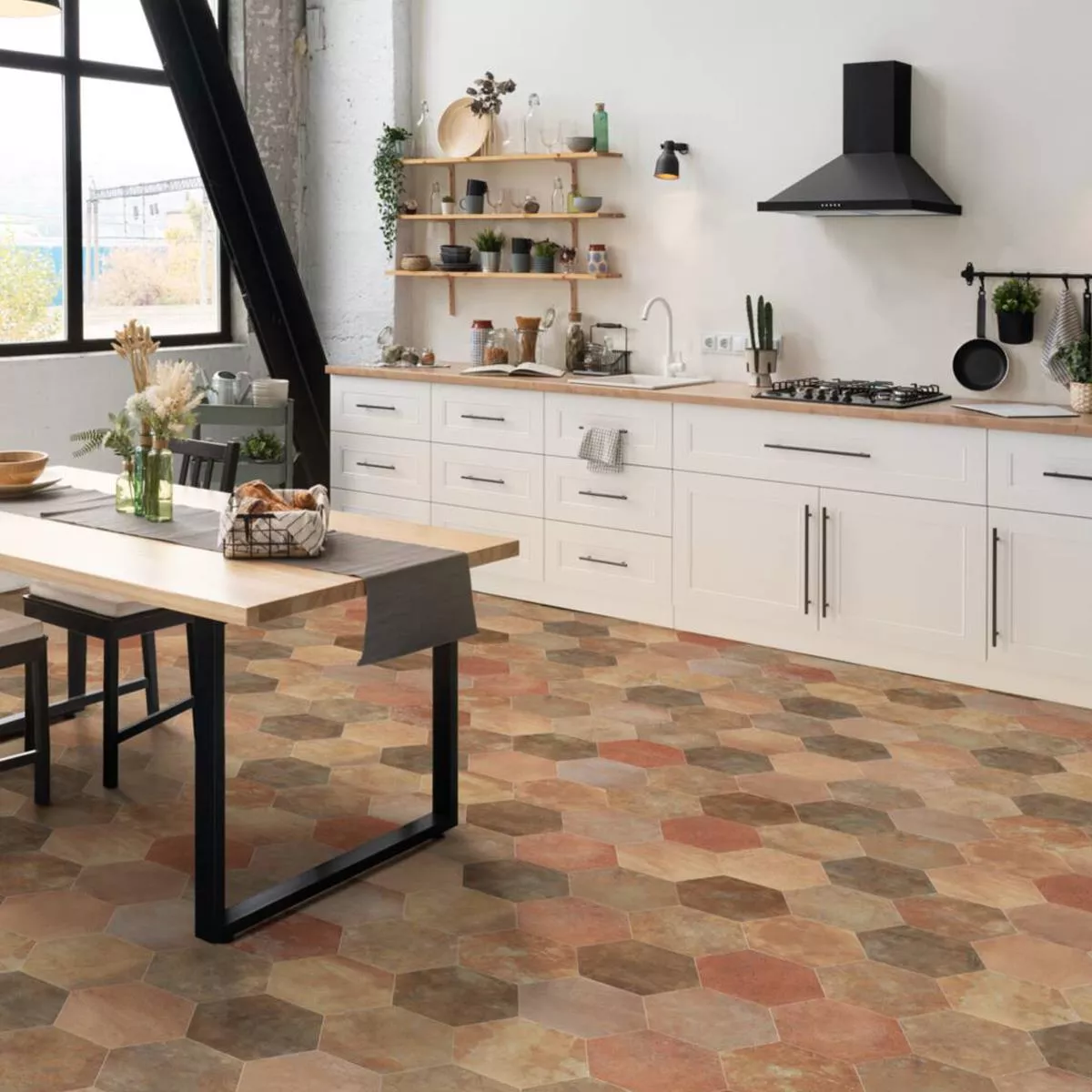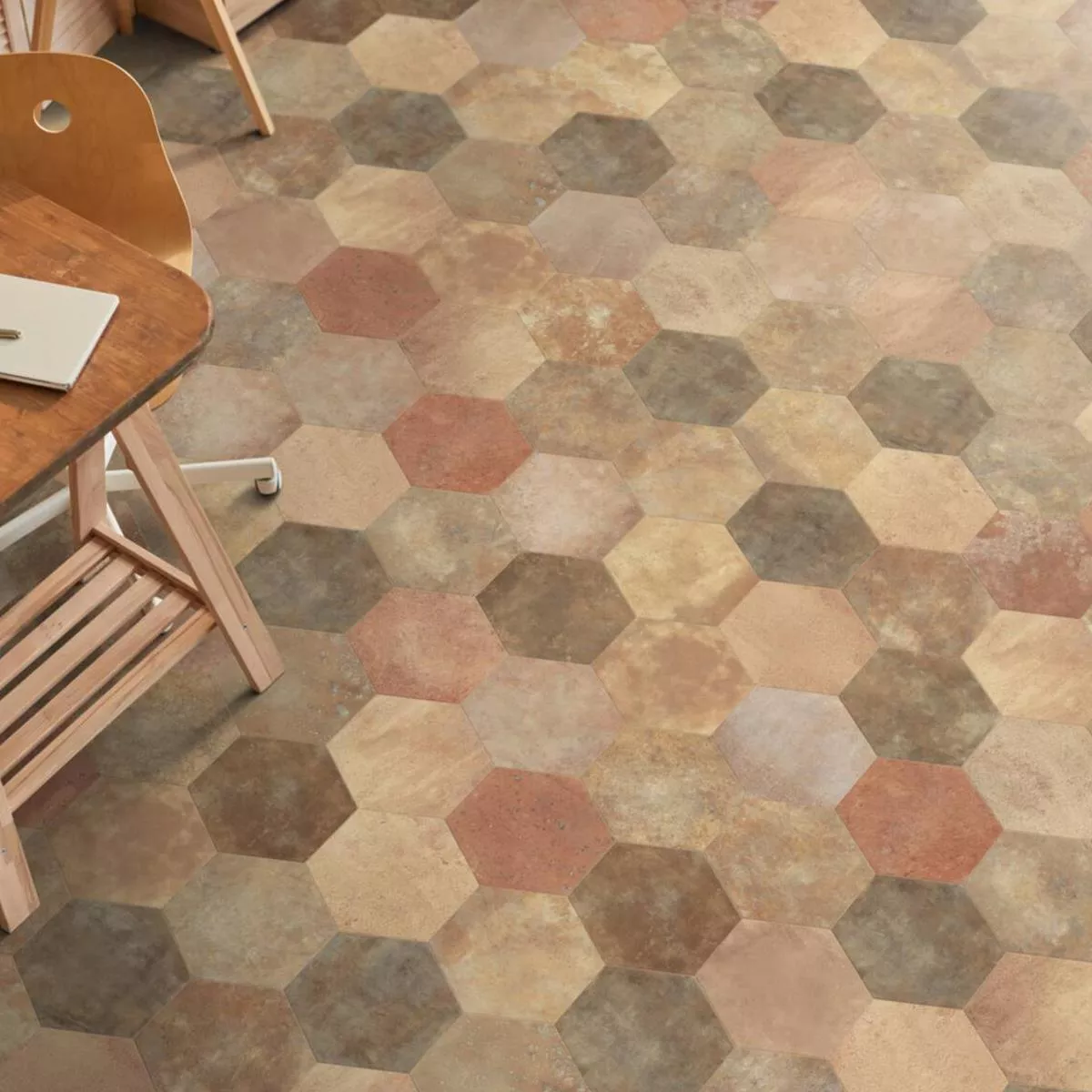 The Santiago floor tile is available in the color Cotto and brings warmth and elegance to any room. Whether in the living room, kitchen, or bathroom, this tile perfectly suits your style and needs.