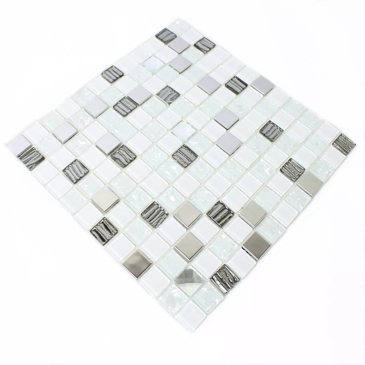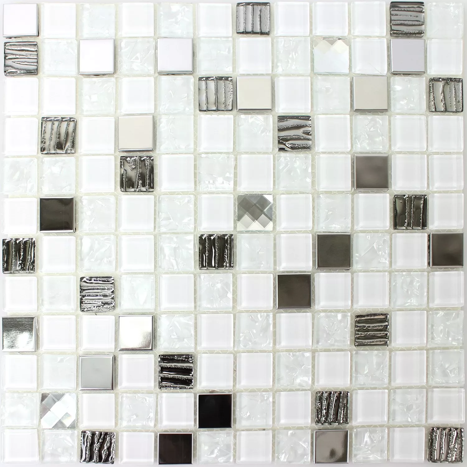 Glas Edelstahl Mosaik Amasya Selbstklebend Weiss Silber