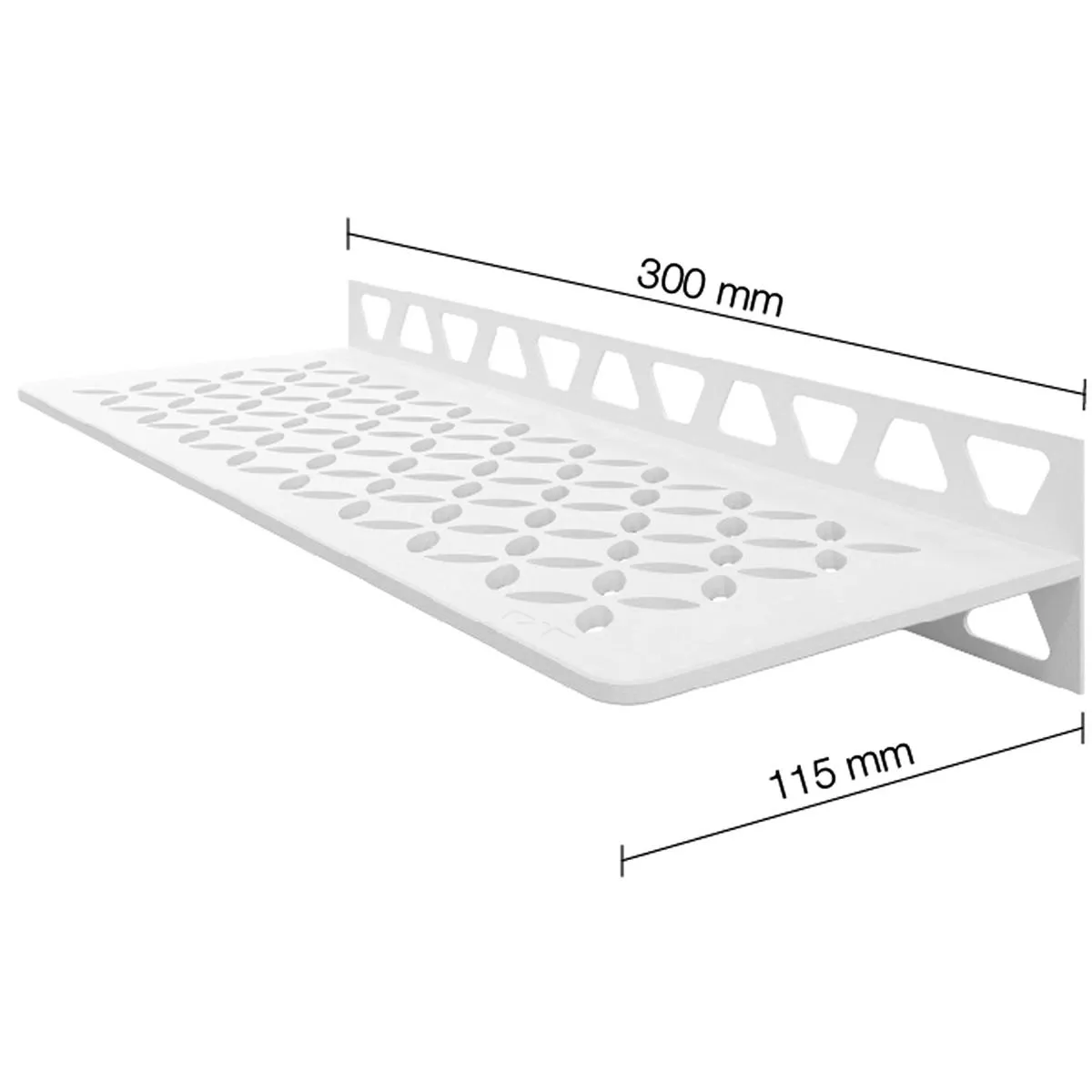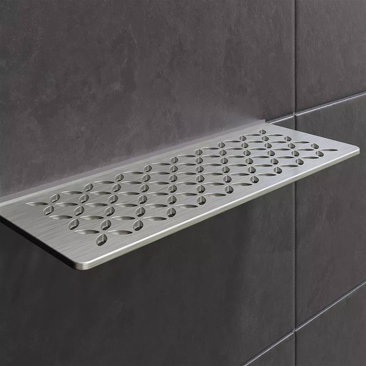Rectangular wall shelf Whether in the bathroom or kitchen: The rectangular Schlüter-SHELF-W shelf can be used anywhere on the flat wall area where you are laying your tiles. Thanks to trapezoidal perforated mounting legs, the shelves are extremely stable and resilient, but at the same time they also impress with their modern look. You can not only choose between five attractive designs, but also between brushed stainless steel and aluminum, the latter of which is powder-coated in a popular TRENDLINE color or a MyDesign RAL color.