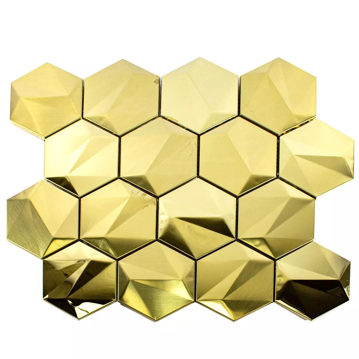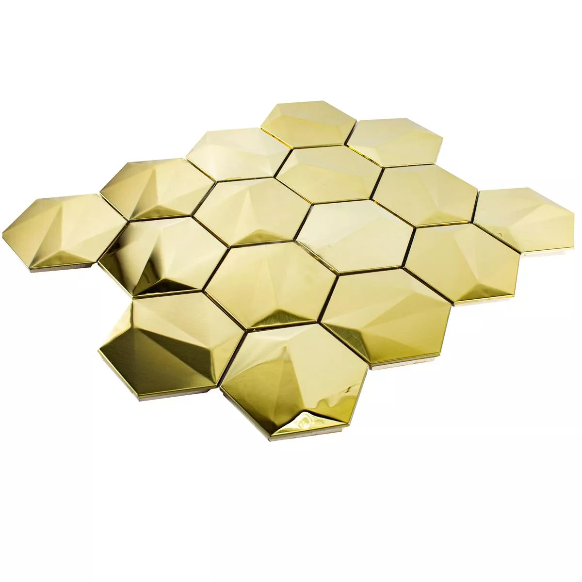 Stainless Steel Mosaic Tiles Durango Hexagon 3D Gold