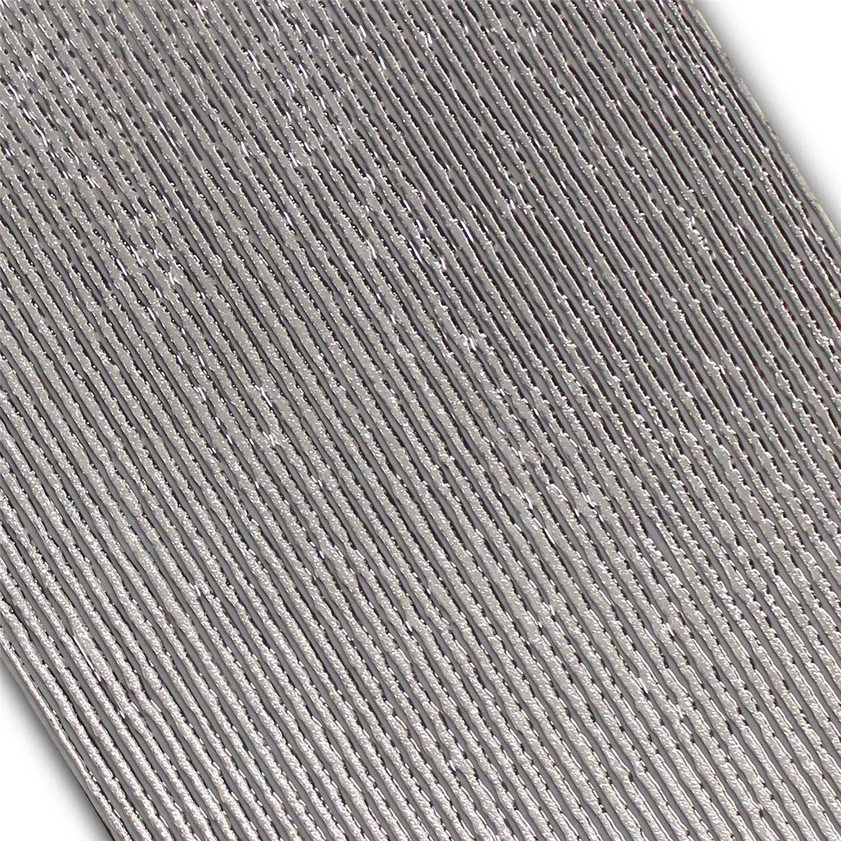 The wall decor tile is available in the color silver and has a shiny ribbed surface. The wall tile is available in the size 30 x 60 cm. The thickness is 10 mm. The wall tile is also calibrated. Wall tiles can be laid in many areas of the home.
