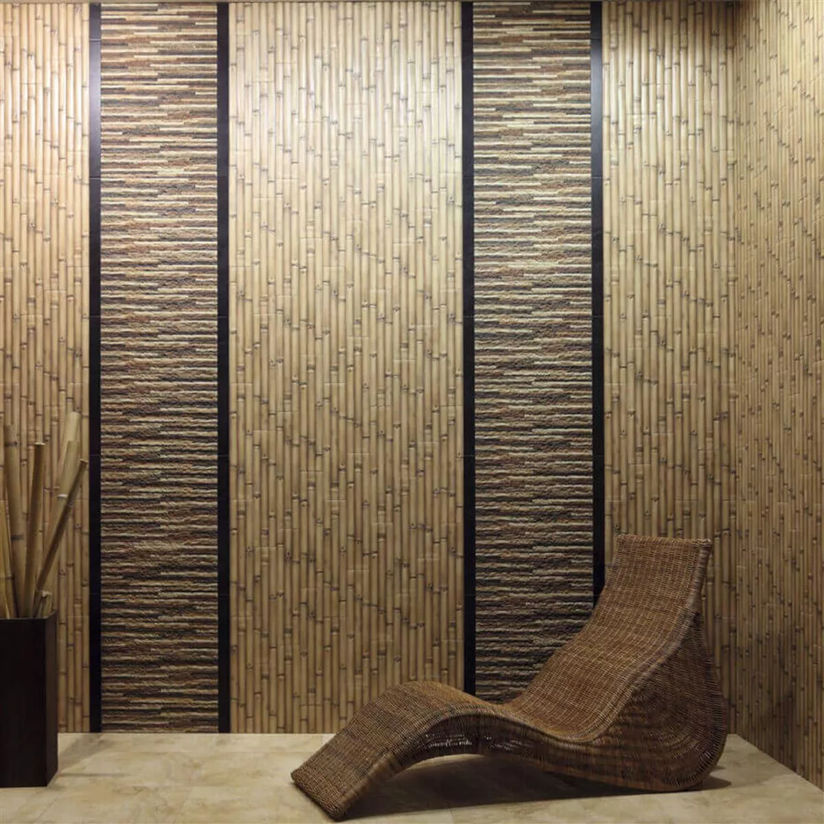 These high-quality stoneware tiles in a stylish bamboo look combine modern design with functional elegance.