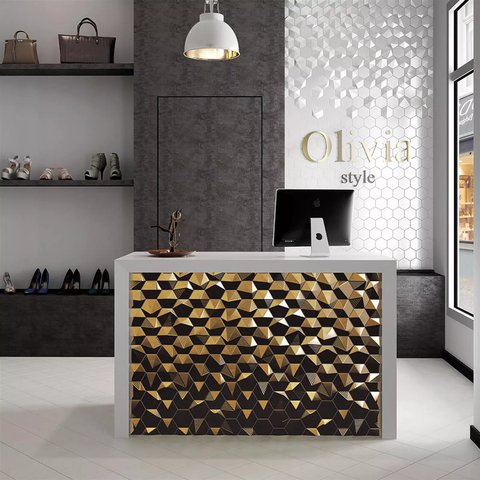 The eye-catching wall tile in rather cool tones goes perfectly with a modern style of living in all interiors. It radiates an avant-garde magic and has a high decorative value. With natural or targeted lighting, the 3D shape of the tile can be used not only to set enchanting accents in the bathroom and kitchen. Each individual tile is already a work of art, so it offers scope for infinitely creative wishes in all areas of the living room, so even an inconspicuous niche becomes a real eye-catcher.